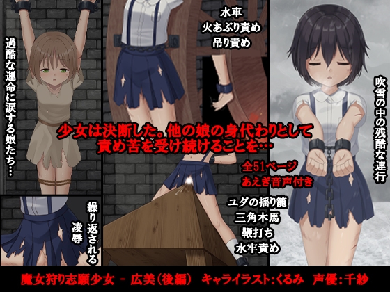 瀬戸内の島に暮らす美少女、広美。 そんな彼女は人には言えない秘密があった。 歴史の漫画で読んだ魔女狩りの物語。 自分と同じ年頃の少女が捕縛され、理不尽な責め苦の果てに自白させられる…。 広美はいつしかそんな目に遭いたいという願望を抱くようになっていた。 彼女の秘めた願いは、ある日突如として叶えられることになる…